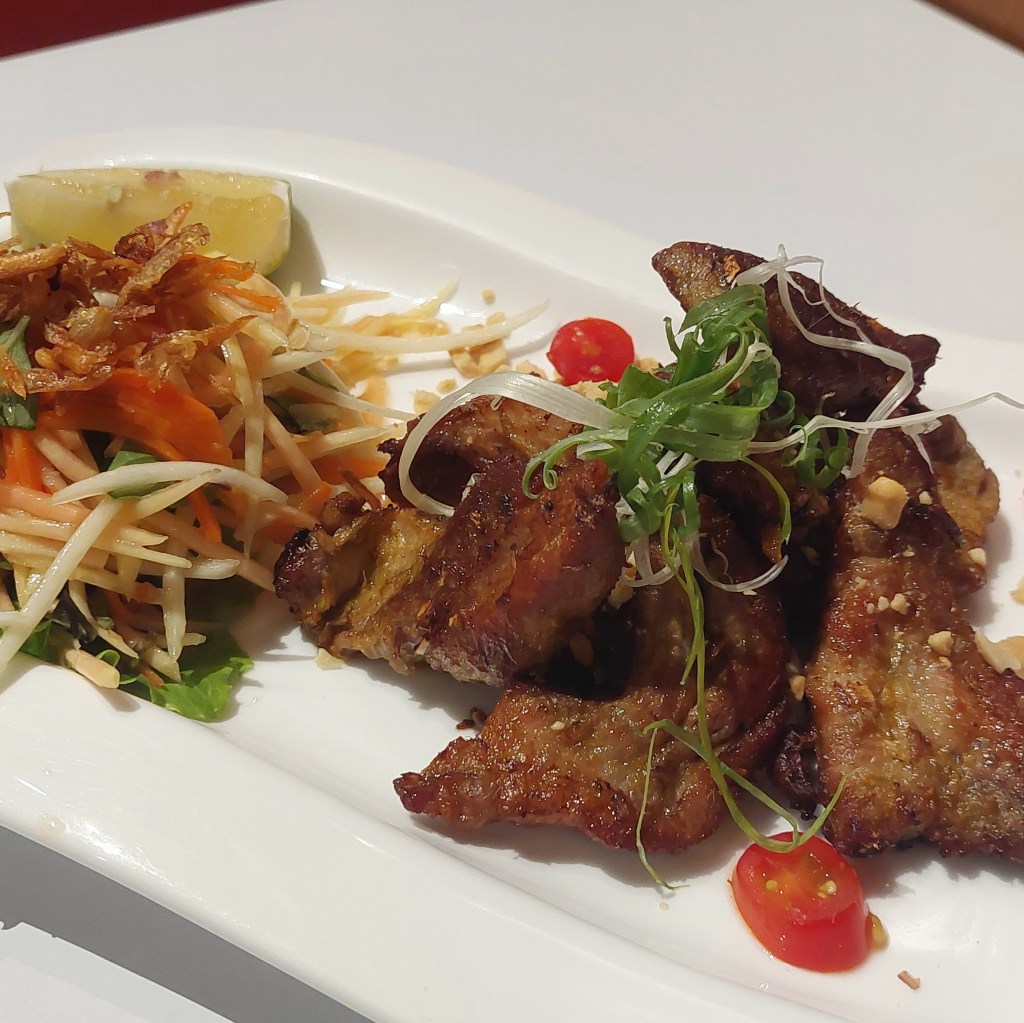主要內容:豬肋排用香茅及越南的五香調味料醃過後烤熟。